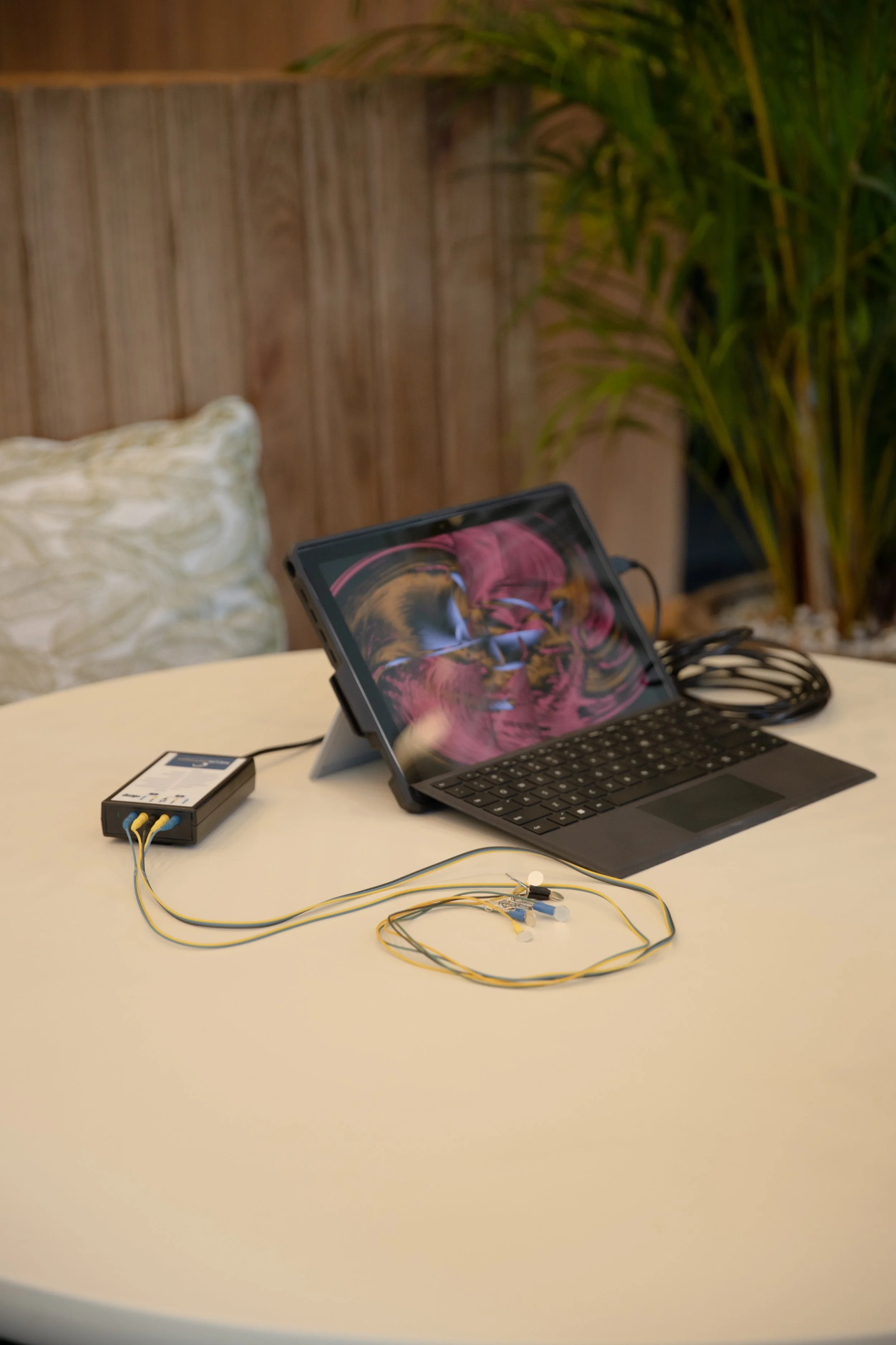 Each NeurOptimal® session is 33 minutes long and is held on a Microsoft Surface Tablet. Sensors are placed on your ears and head and you can relax while you listen to music and watch a visual for the duration of the session. Throughout the session your brain will receive feedback from the NeurOptimal® software via brief pauses in the music. These pauses occur as NeurOptimal® detects shifts in your cortical activity and relays that information back to your brain in real-time. It's like putting a mirror in front of your brain so that it can see exactly what it's doing. Your brain then decides what it wants to do with that information; it's that simple!